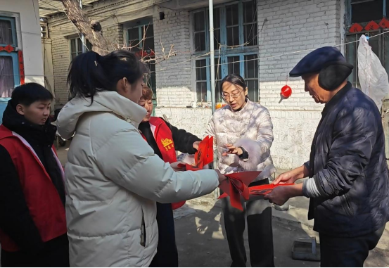 活动现场分工明确、秩序井然,工作人员提前完成现场布置,书画师生挥毫泼墨、笔走龙蛇,一幅幅寓意吉祥的春联跃然红纸之上。活动中,工作人员率先前往唐家庄村、浮邱村等村,为7户重点对象上门赠送春联和福字。与此同时,全镇范围的春联书写、分装及配送工作也同步有序展开,确保节日祝福及时覆盖辖区内每一位群众。